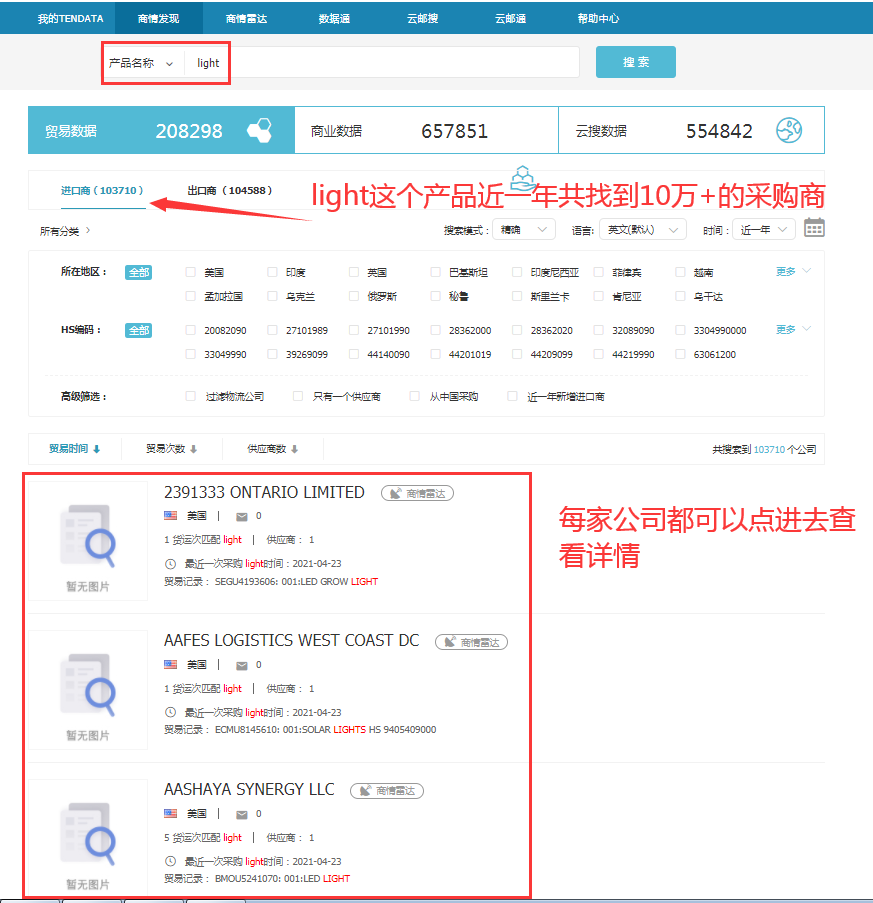 顺利获得凯发K8数据,外贸人可以清晰地看到采购商的进口交易信息(采购频率、采购数量,交易规模),判断开发价值,以此来选取目标客户,同时还能够获取目标地区贸易公司常用运货方式、包装方式,便于节约沟通时间,降低开发成本。